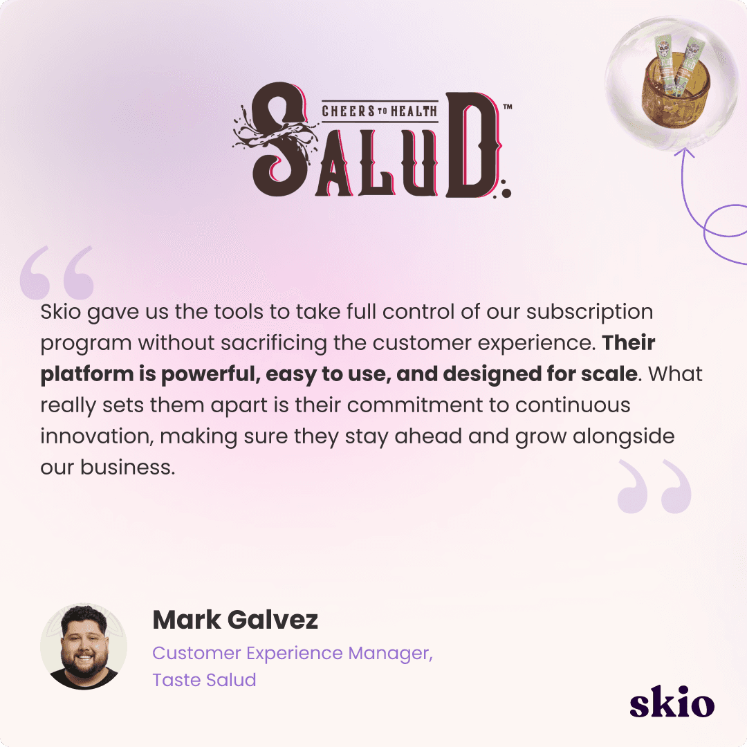 Mark Galvez, Customer Experience Manager at Taste Salud, runs subscription operations for this LA-based functional hydration brand bringing nostalgic Latino flavors to health-conscious consumers. Since partnering with Skio, they've turned strong creator-driven demand into a compounding retention engine with subscription revenue climbing well over 60% year-over-year.
